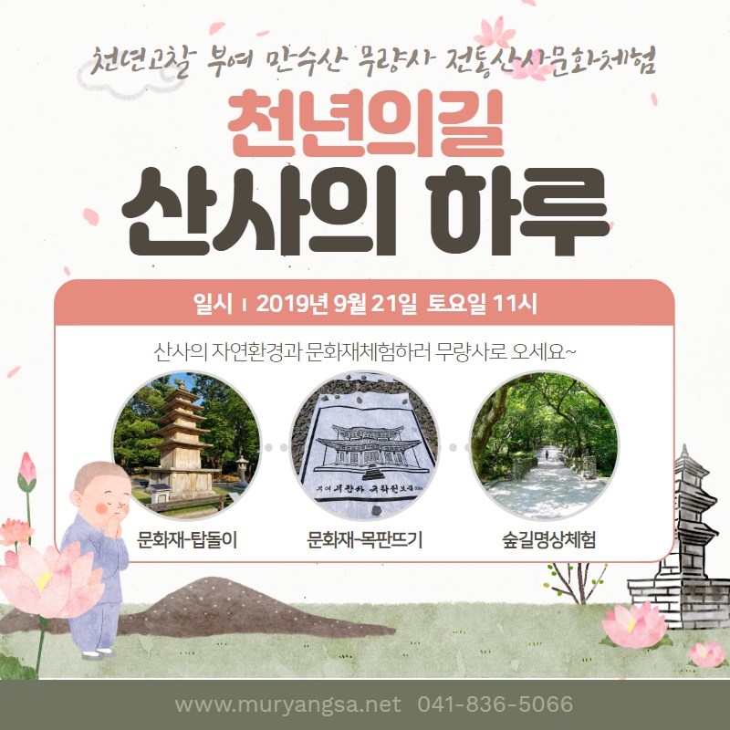 산사의 하루 체험하러 9월 21일 부여 무량사로 오세요!!