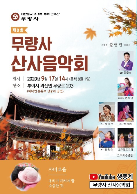무량사에서는 이번 산사음악회를 비대면 유튜브생중계 공연으로 진행했습니다.