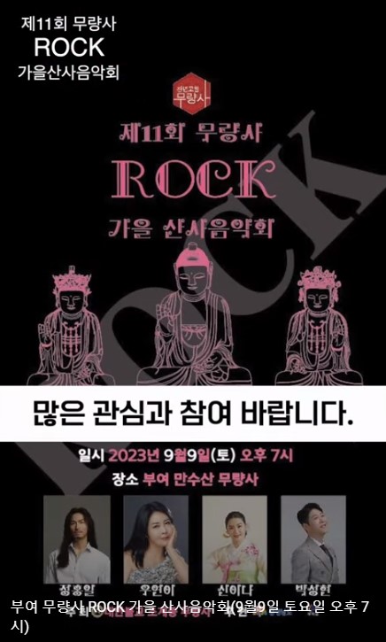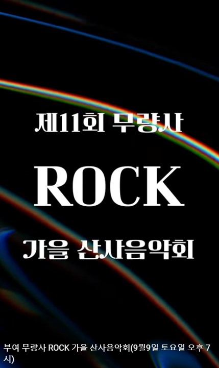 | [산사음악회] 제11회 가을 ROCK 산사음악회 (0) | 2023.08.22 |