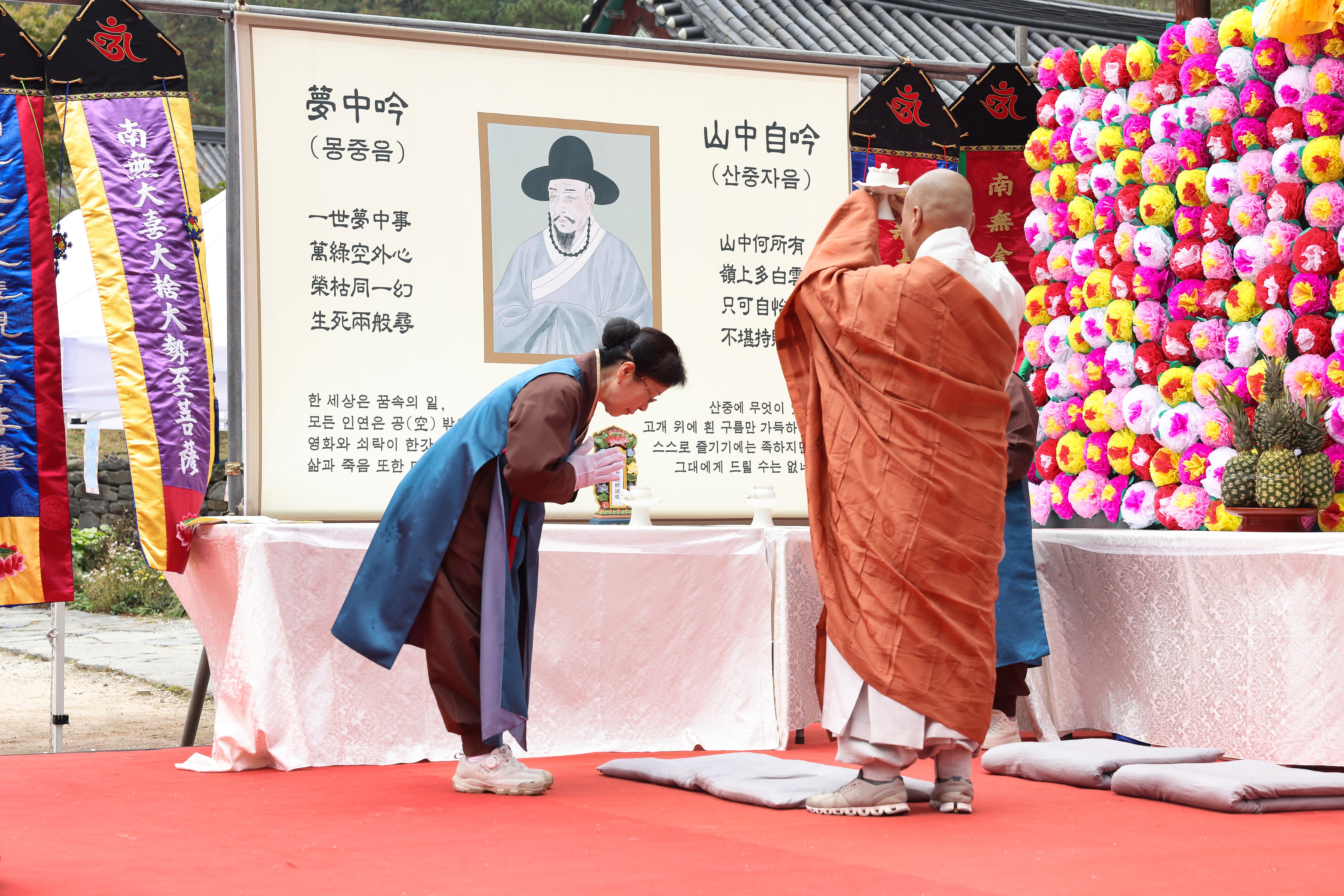 조선시대 최고의 사상가이자 문인으로 부여 무량사에서 일생을 마감한 매월당 김시습의 생애와 사상, 문학 정신을 기리고 국가와 개인의 안녕을 기원하는 자리가 마련됐습니다. 천년고찰 부여